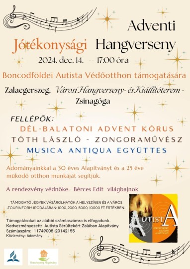 Adventi Jótékonysági Hangverseny az Autista Védőotthon javára